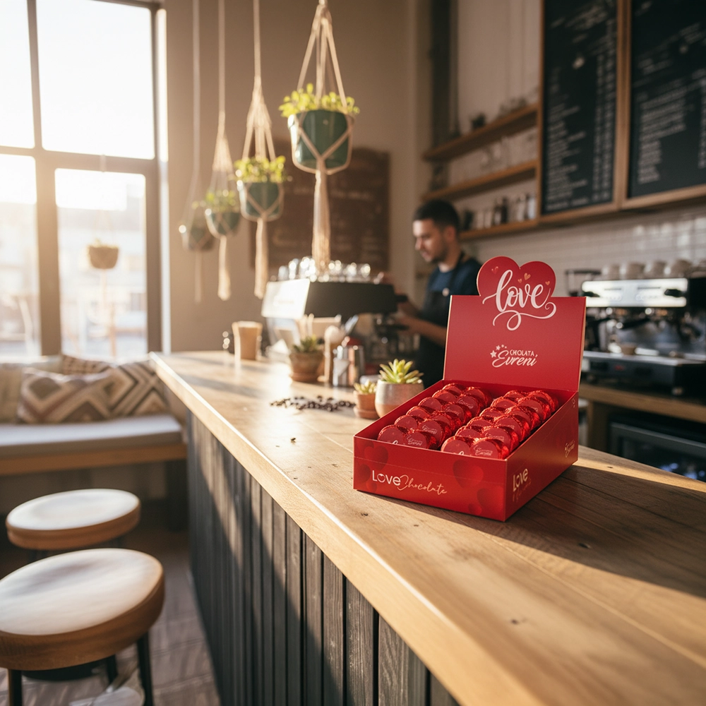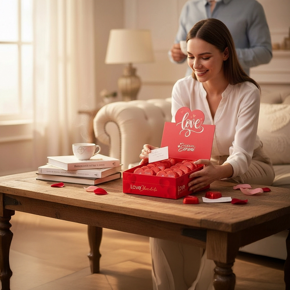 Kutunun içinde yer alan kırmızı sargılı kalpli çikolatalar, Sevgililer Günü’nün romantik ruhunu tamamlayan şık ve anlamlı bir detaydır ❤️ Hem göze hem damağa hitap eden bu özel dokunuş, sevginizi kelimelere gerek kalmadan anlatır.